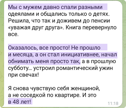 Только для моих читательниц — я открываю доступ на живой закрытый тренинг, где покажу техники в прямом эфире, чтобы вы могли начать применять знания из книги уже завтра.